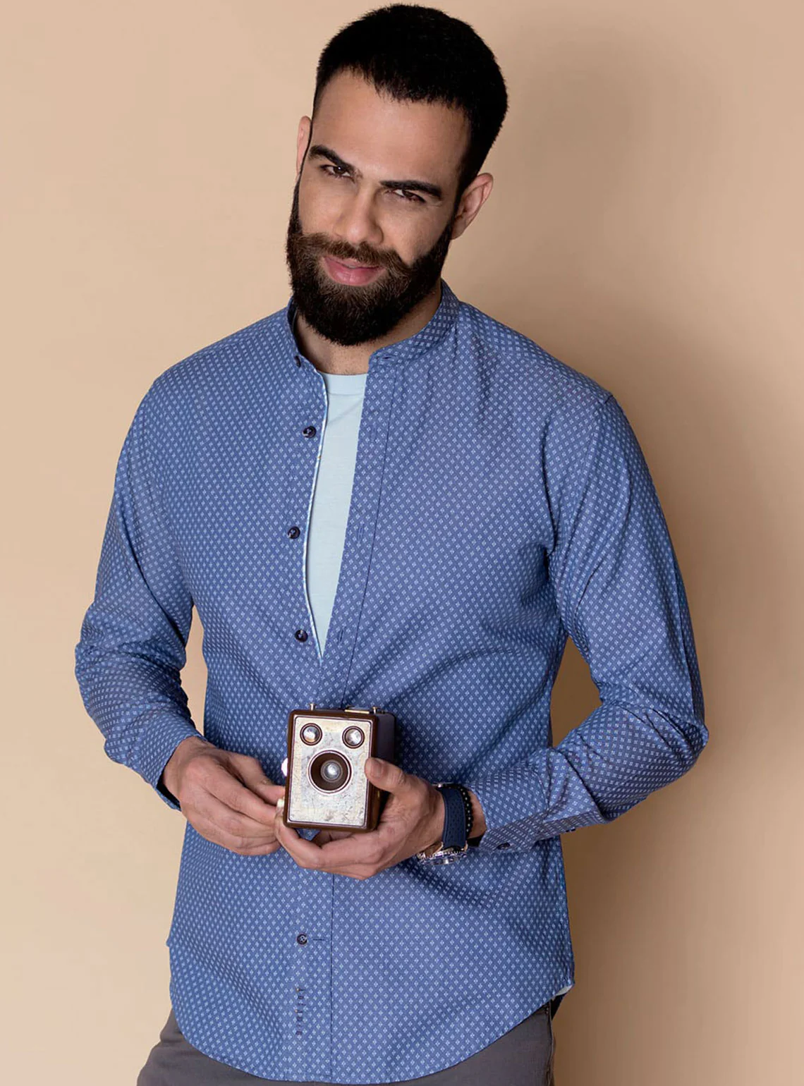 We've been looking for the perfect lightweight chambray fabric for a while and we've finally found it. This soft blue shirt drapes very well and works great as a casual, all year-round shirt thereby making it your quick go-to shirt.